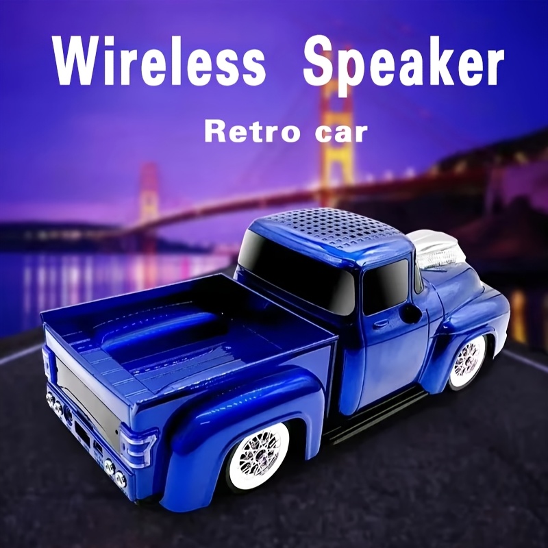 1 Retro Style Car Portable Mini Wireless Pickup Truck Speaker With Built-in Microphone, USB, FM, TF, AUX, LED Party Lights, Hot Selling Car Shaped Speaker, High-quality Outdoor Portable Car Player, Long Standby Rechargeable Truck Speaker, Hot Rod Pickup Truck Replica Wireless Speaker