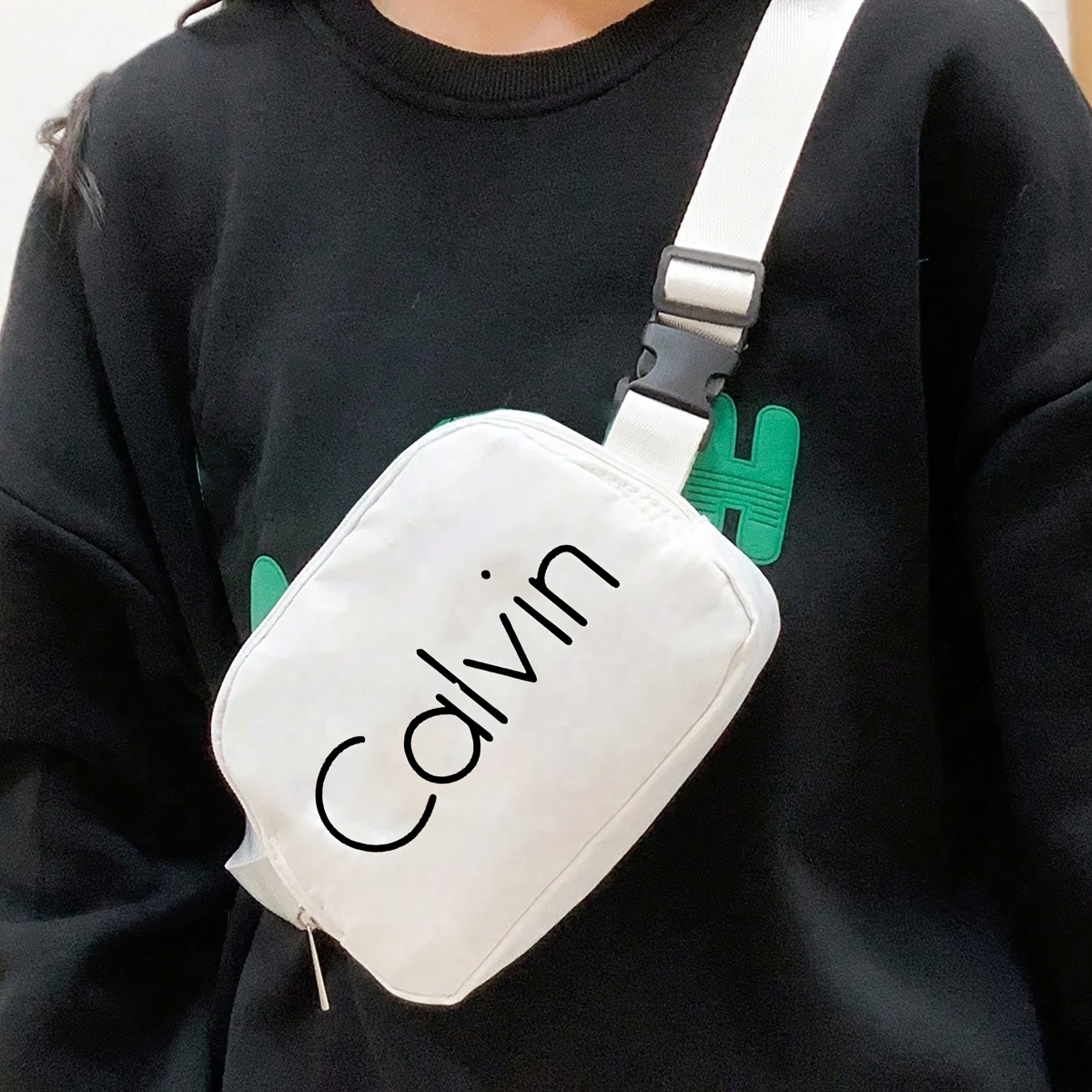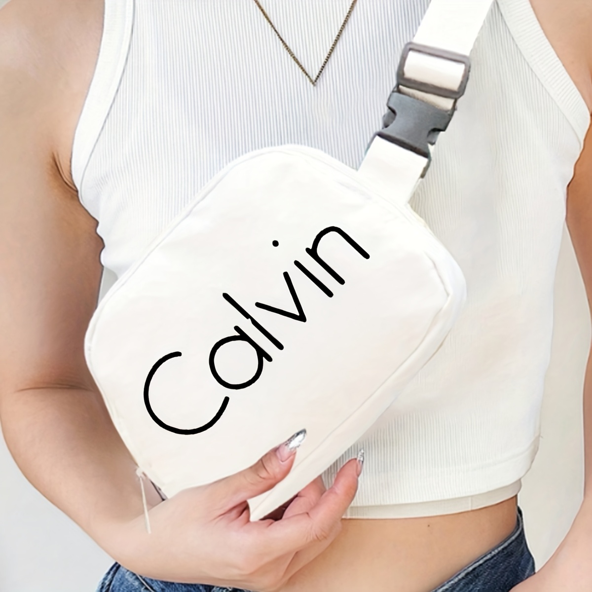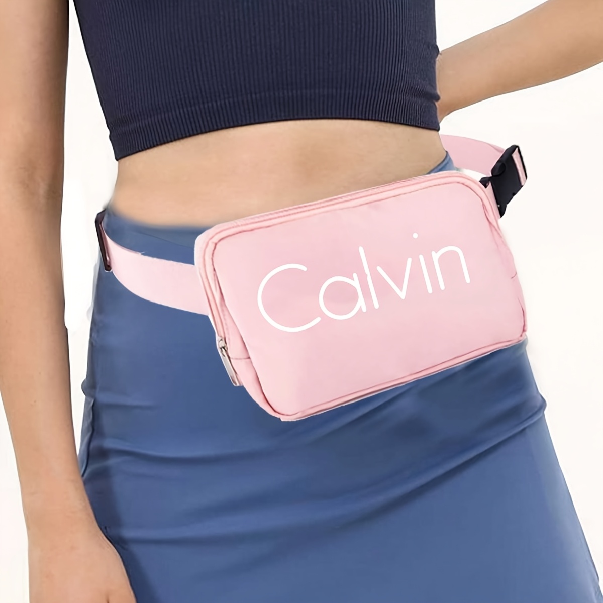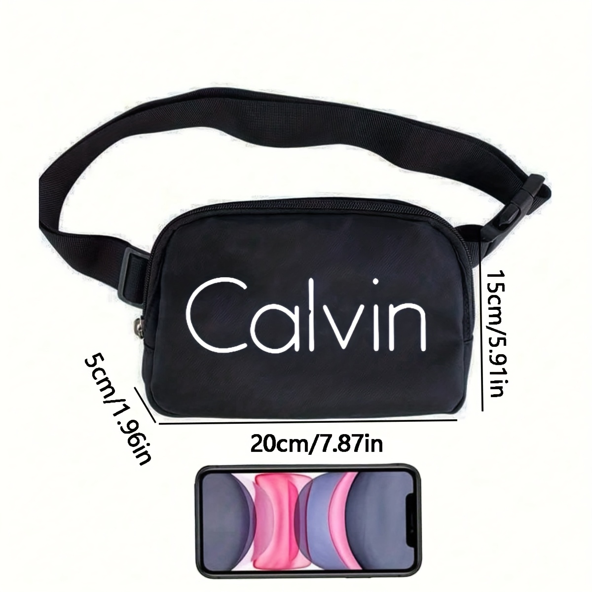 1pc Mini Crossbody Bag with “Calvin” Pattern, Adjustable Strap Waist Pack, Multi Functional Cross Body Chest Bag, Outdoor Sports Running Fanny Pack, Lightweight Casual Small Waist Pouch Bag, Unisex Everywhere Belt Bag, for School, Travel, Workout