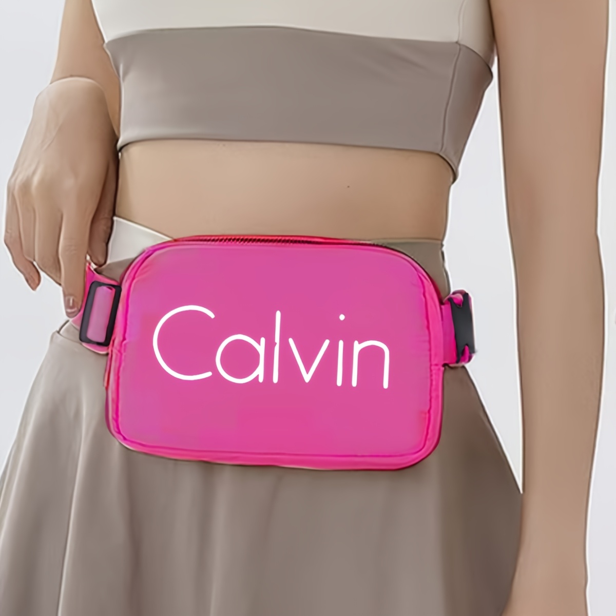 1pc Mini Crossbody Bag with “Calvin” Pattern, Adjustable Strap Waist Pack, Multi Functional Cross Body Chest Bag, Outdoor Sports Running Fanny Pack, Lightweight Casual Small Waist Pouch Bag, Unisex Everywhere Belt Bag, for School, Travel, Workout 938 sold