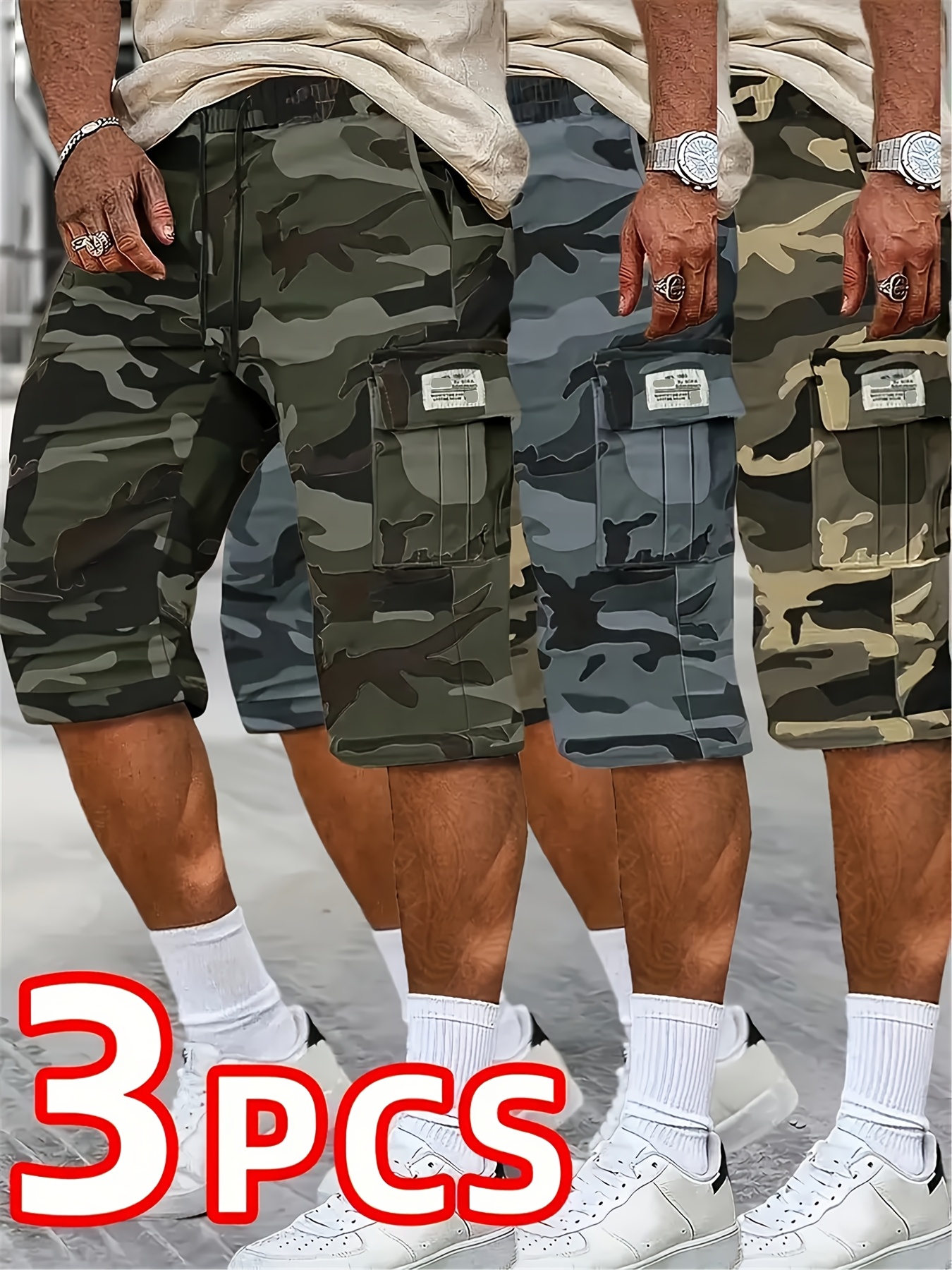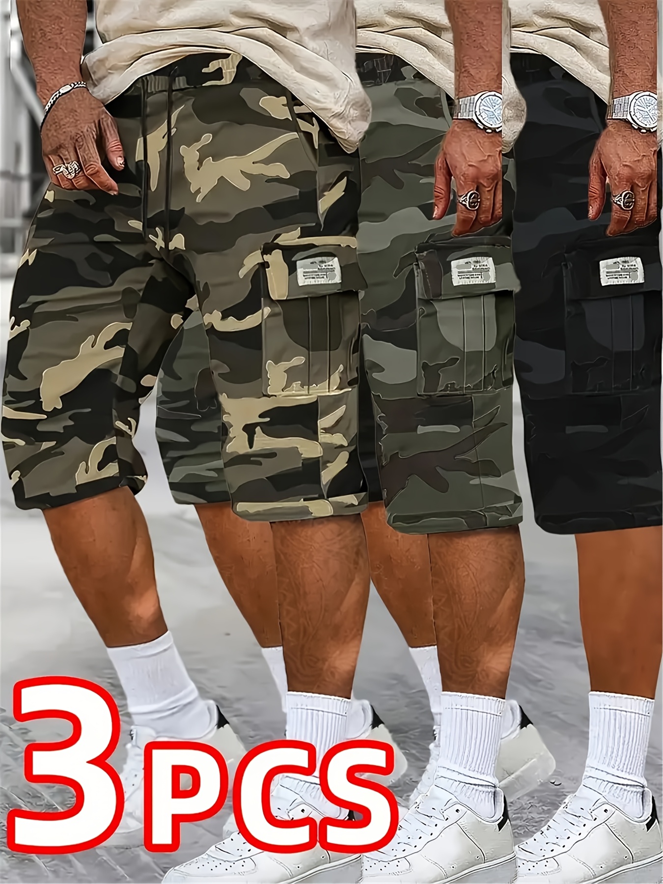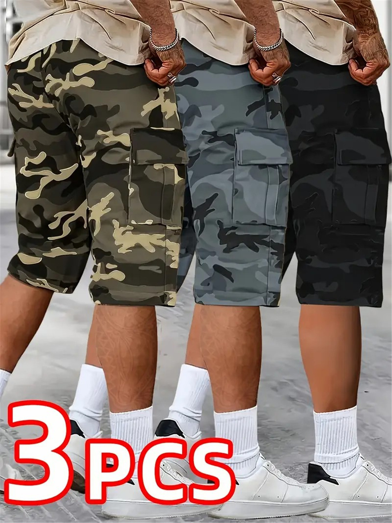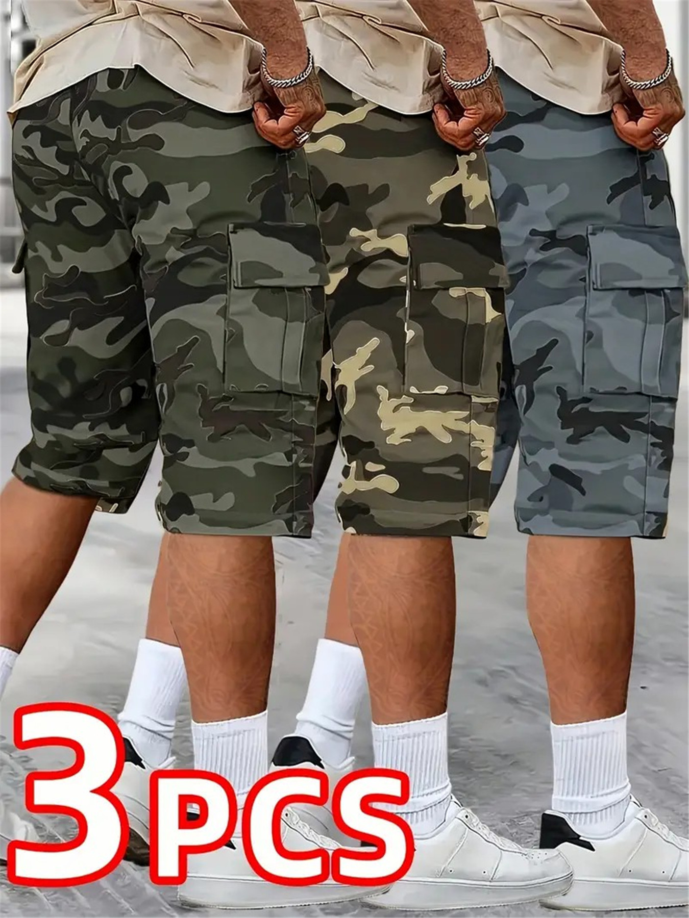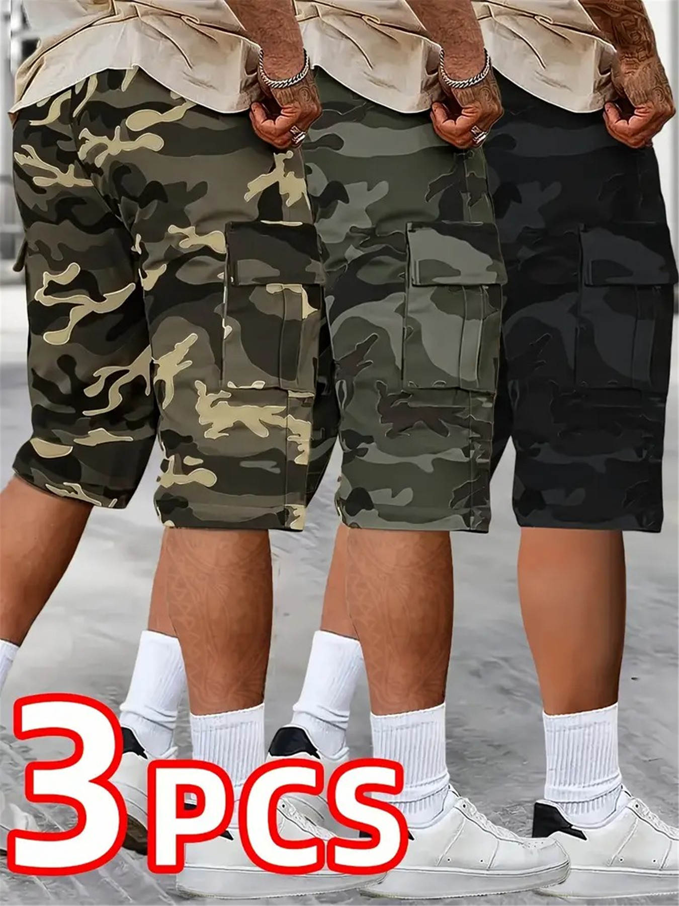 3pcs set, Men’s fashionable and high-end versatile shorts, loose camouflage seven quarter shorts, this shorts is the perfect choice as a gift