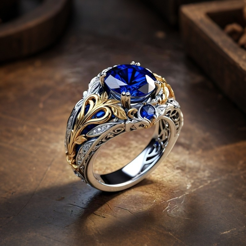 925 sterling Silvery two tone ring set with Synthetic Sapphire, vintage style jewelry, domineering Men’s and Women’s rings, suitable for daily wear and party/ birthday/ anniversary Christmas gifts