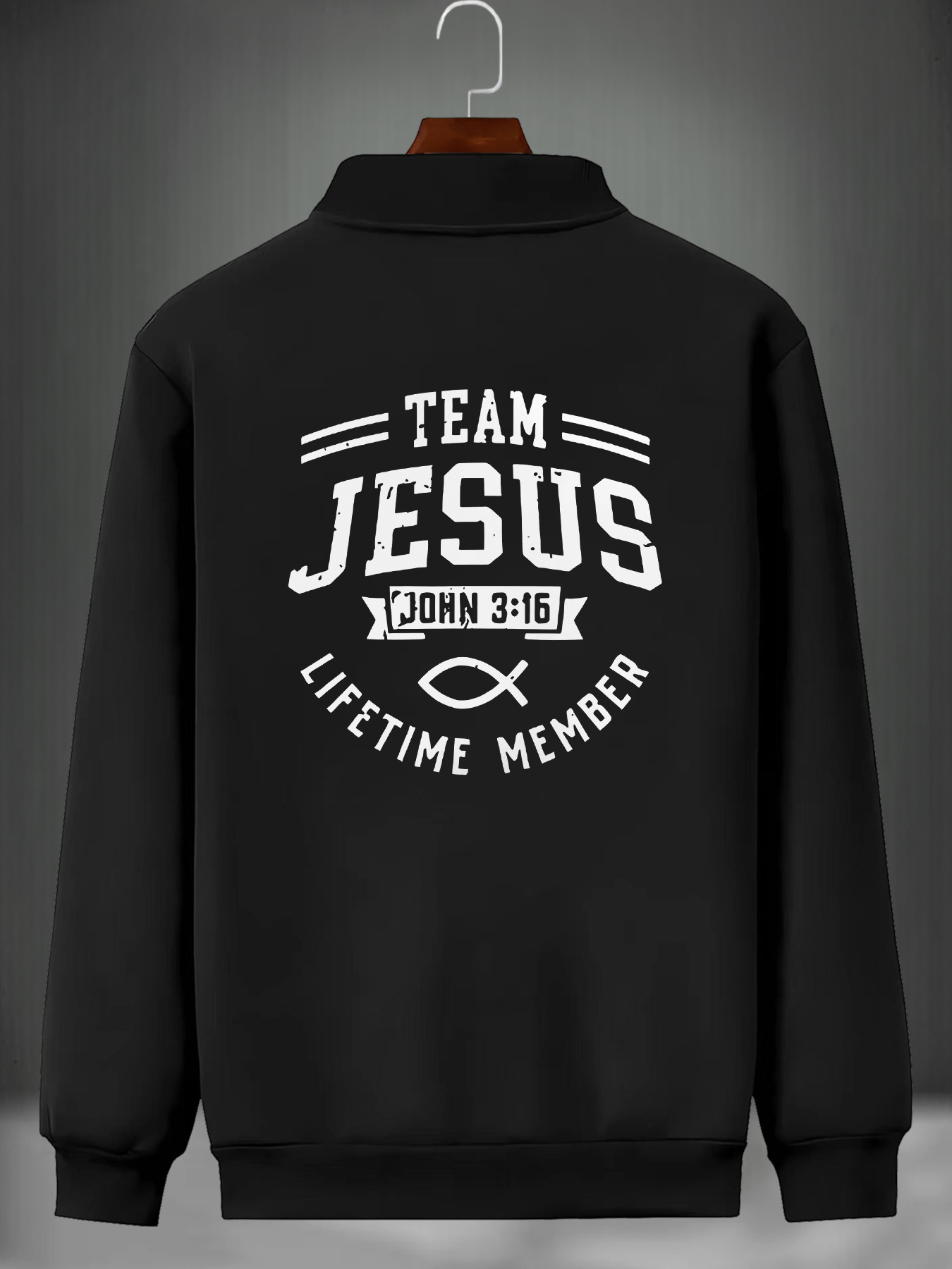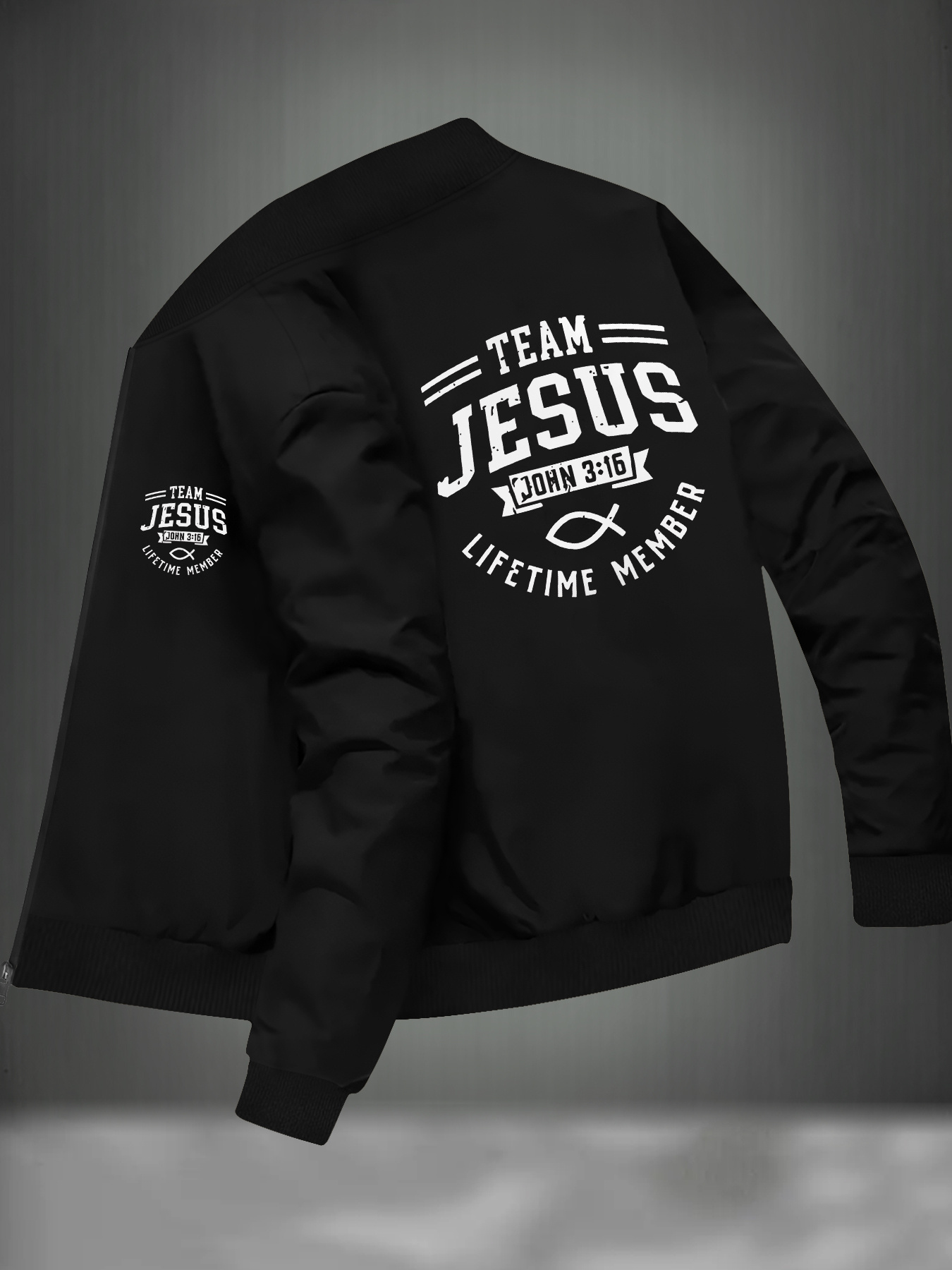 Jesus Print Elements Men’s Trendy Autumn & Winter Jacket – Stand Collar, Casual, All-Match, High-End – For Men – Stylish & Comfortable – Perfect Gift for Fashionable Guys